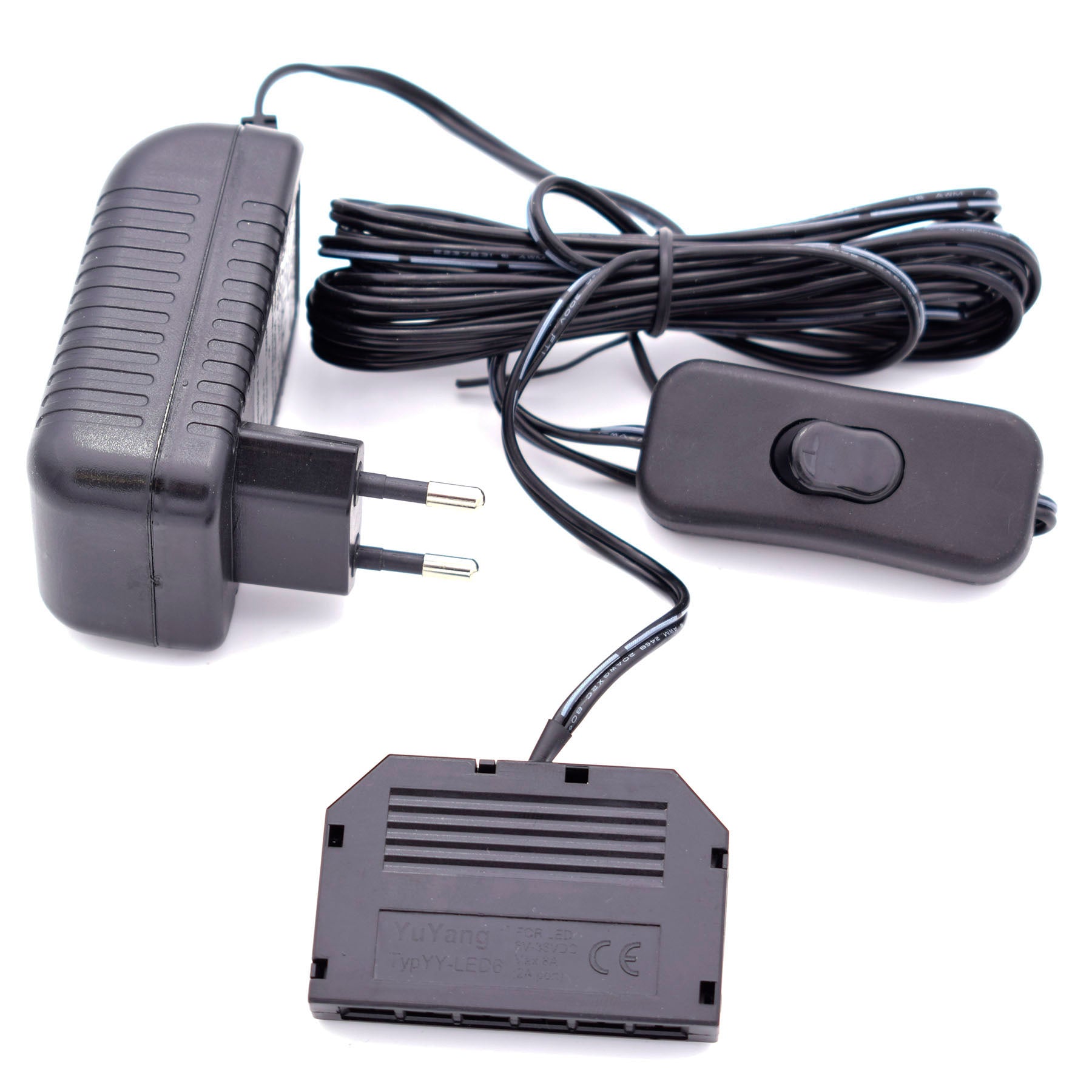 Das 20W Steckernetzteil mit integriertem Handschalter und 6-fach-LED-Verteiler ermöglicht den Anschluss von bis zu sechs YuYang LED-Leuchten und sorgt für eine zuverlässige und gleichmäßige Stromversorgung.
