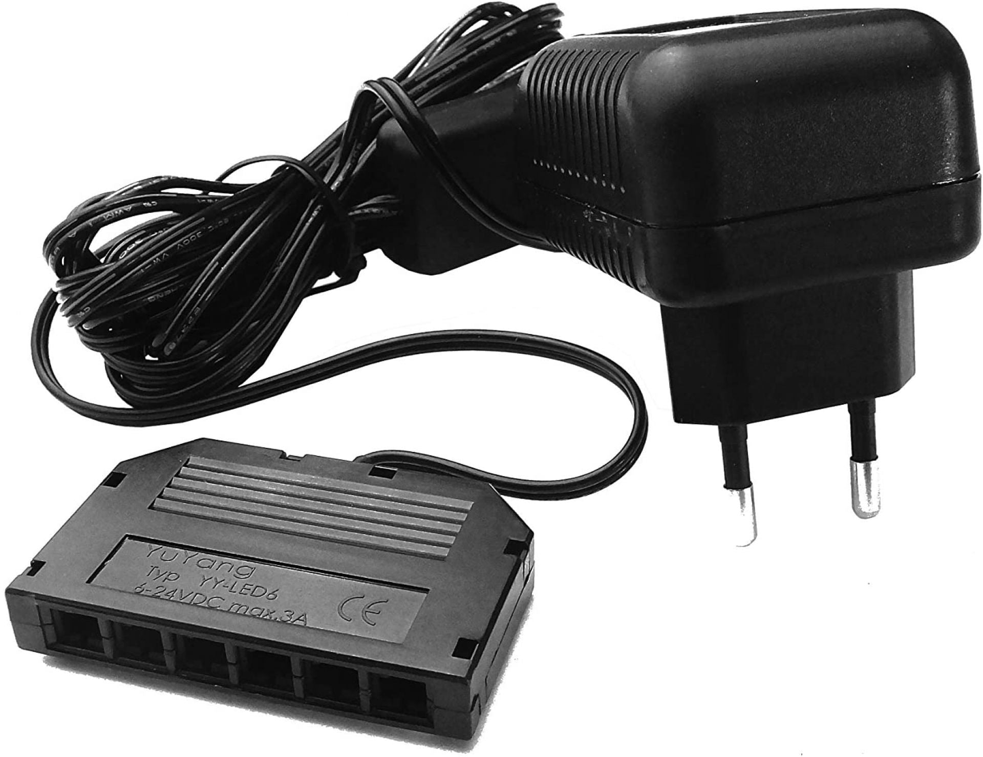 20W Trafo Steckernetzteil – Schwarz mit Handschalter & 6-fach LED-Verteiler (YYE-AR-20)