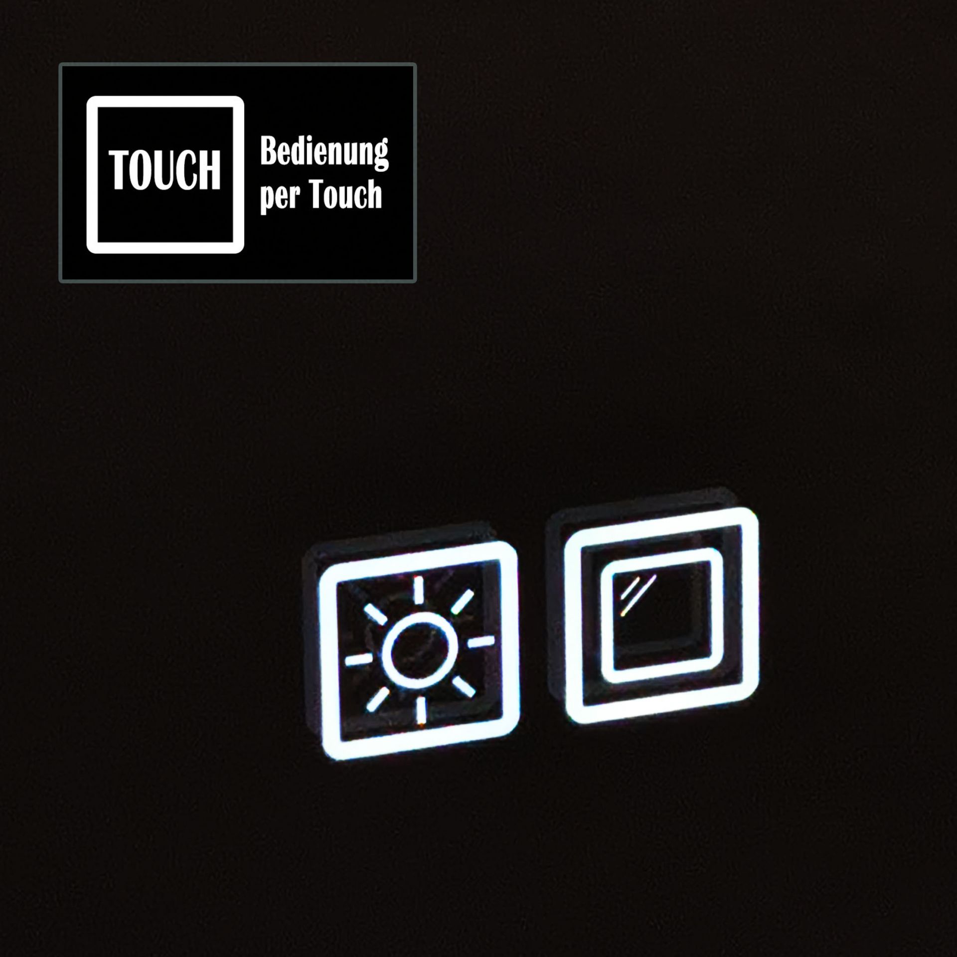 Einfaches Ein- und Ausschalten per Touch-Schalter – sowohl Hauptlicht als auch Hintergrundbeleuchtung lassen sich bequem steuern.
