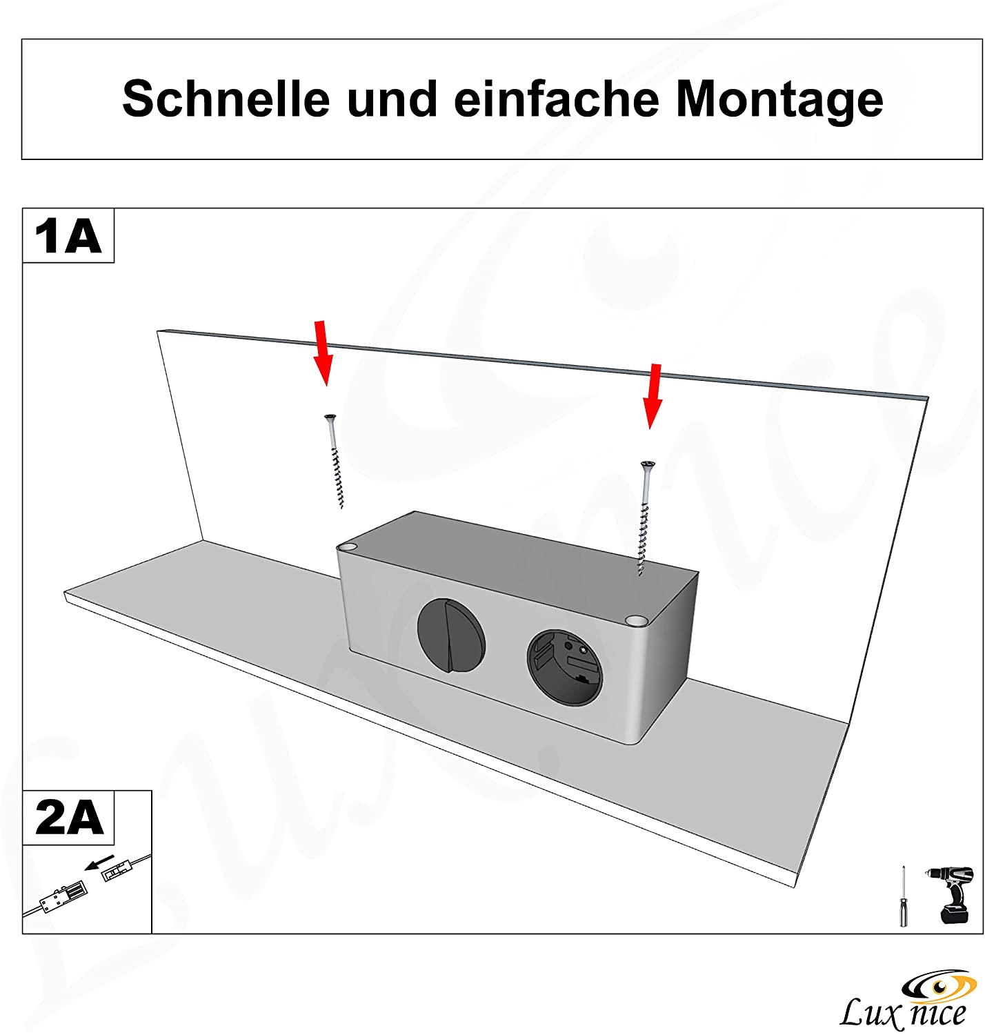 Schalter & Steckdose: Ein-/Ausschalter integriert, Schuko-Steckdose vorhanden
